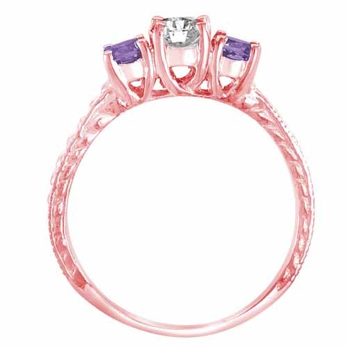 #This dazzling sparkling timeless ring is classic and can be used as an engagement ring, anniversary ring, bridal ring, promise ring, proposal ring, fashion ring, wedding ring, cocktail ring and also to represent eternal love between you and that special someone. This 18K rose gold diamond ring is prong set with 1 round diamond and 2 round Tanzanite gemstones. The total carat weight of all the stones are approximately 0.95 carats. The diamonds are H-I color and SI-I2 clarity. The ring band measures approximately 1.80 mm wide and 1.0 mm thick.