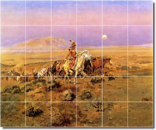 Charles Russell Western Kitchen Tile Mural 17. 40x48 Inches Using (30) 8x8 ceramic tiles.