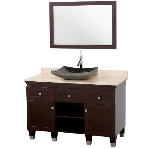 Wyndham Collection WC-CG5000-48-Espr/Ivory Espresso / Ivory Top Premiere 48" Premiere Floor-Standing Modern Vanity Set - Includes Cabinet, Marble Top and Backsplash, Ceramic or Glass or Stone Vessel Sink, and Mirror WC-CG5000-48