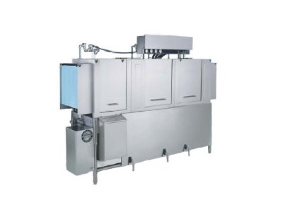 | Jackson AJ-86CGP Dishwasher #Dishwasher Conveyor Type adjustable conveyor speed approximately 287 racks/hour hi-temp sanitizing two tank design (wash/power rinse) with 22" recirculating prewash 25" clearance through machine stainless steel construction recirculated hot water t