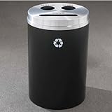 Glaro RecyclePro III Receptacle, 33 Gallon, 20 inch W, 2 ea. 4-7/8 inch Dia. holes, 1 ea. 2 inch x12 inch Slot, Bottles - Glass - Paper messages w/ Recycling Logo, Satin Black Finish, Satin Aluminum Top