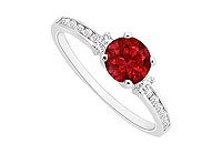 Ruby and Diamond Engagement Ring : 14K White Gold - 0.50 CT TGW Size 8.5
