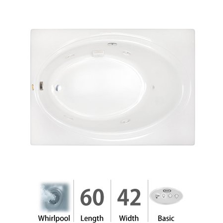 Jacuzzi NOV6042 WLR 2CH W White Nova 60" x 42" Nova Drop In Comfort Whirlpool Bathtub with Basic Controls, Chromatherapy, Heater, Left Drain and Right Pump NOV6042 WLR 2CH